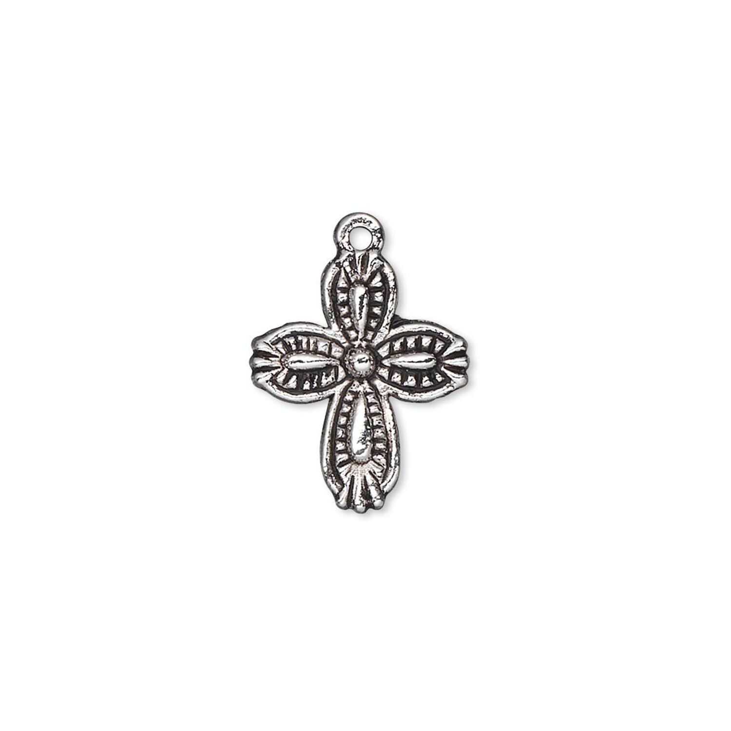 Religious drops with a traditional antique silver plating are made of "pewter" (zinc-based alloy). Lightweight and sturdy, easily add to a variety of jewelry using a jumpring.
