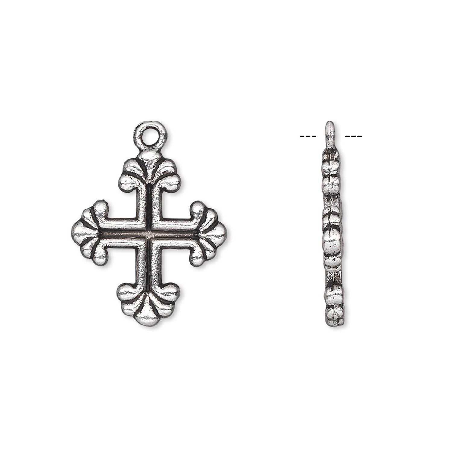 Drop, antique silver-plated "pewter" (zinc-based alloy), 17x15mm double-sided cross. Sold per pkg of 10.