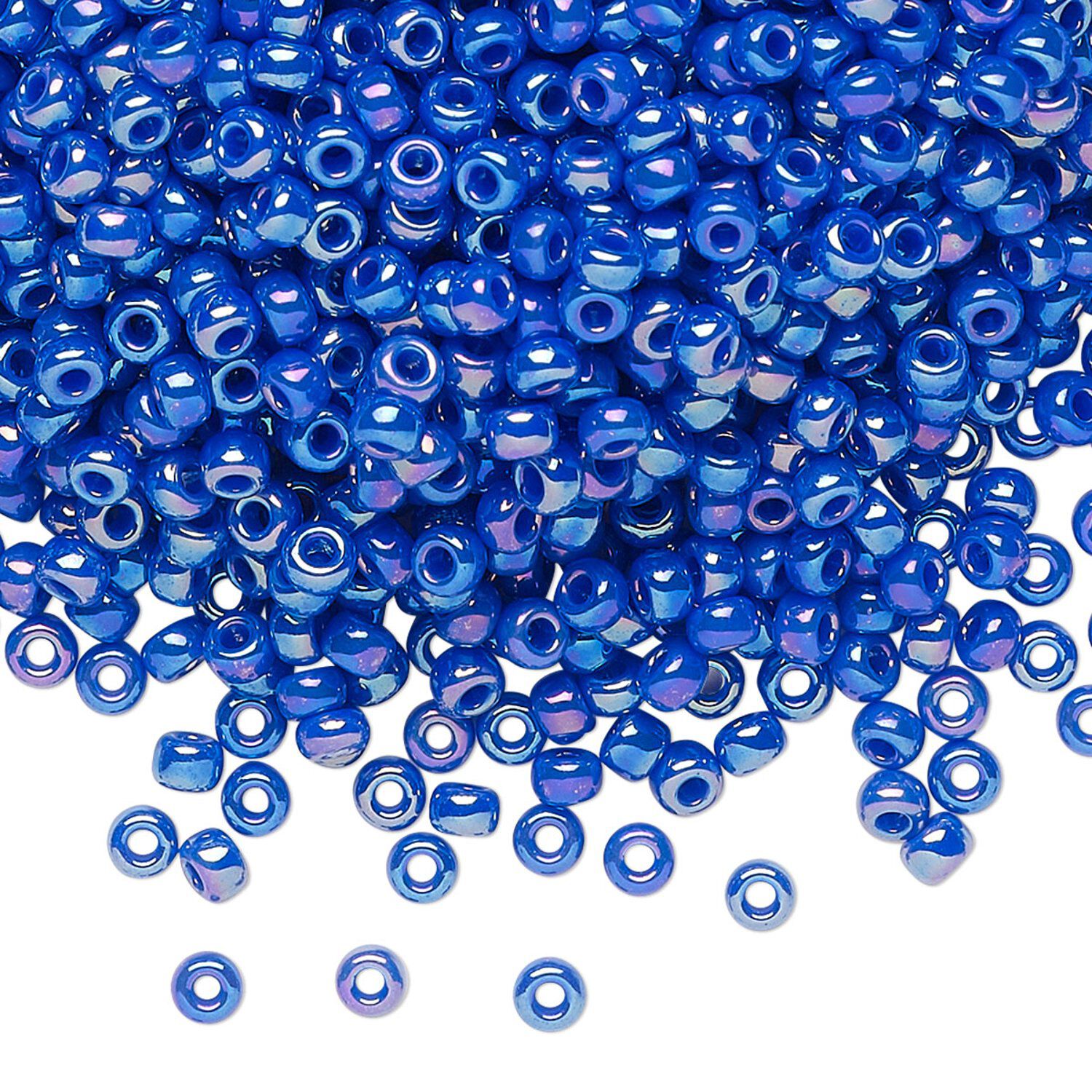Seed bead, Miyuki, glass, pkg/50g, #8 rocaille, opaque rainbow cyan blue, (RR-483D).