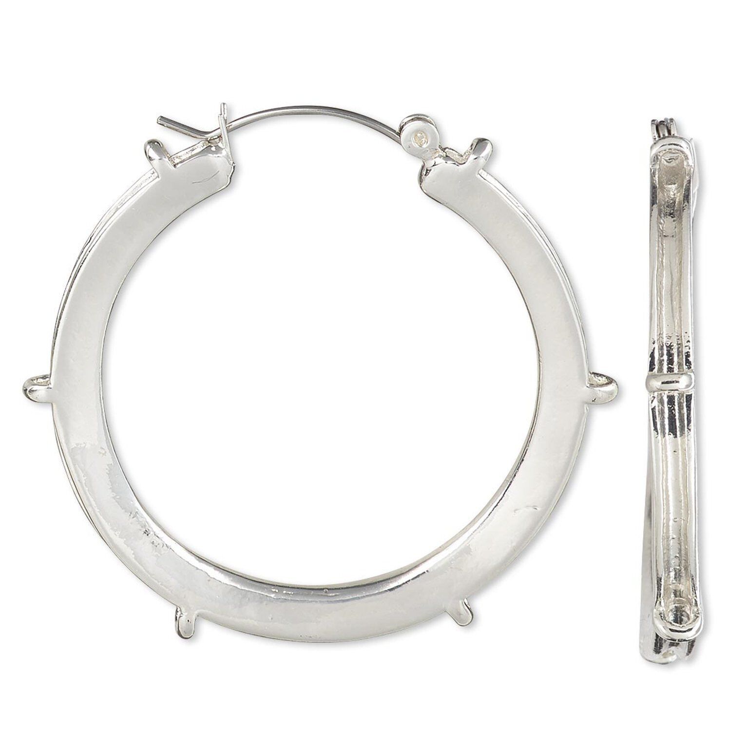 Hoop earrings in silver-plated brass feature smooth, even surfaces and a series of 6 loops around their outside edges. The hoops have channels that can accept wire strung with 4mm beads; the channels can also be filled with Apoxie® Sculpt or other molding compound.