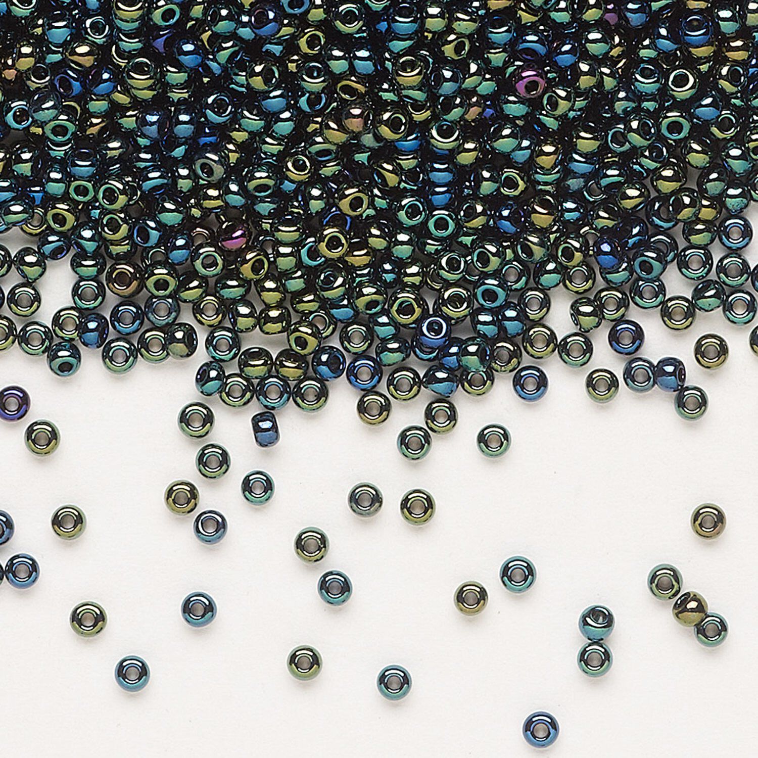 Seed bead, Preciosa Ornela Czech glass, pkg/500g, #11 rocaille, opaque green iris black, (59155).