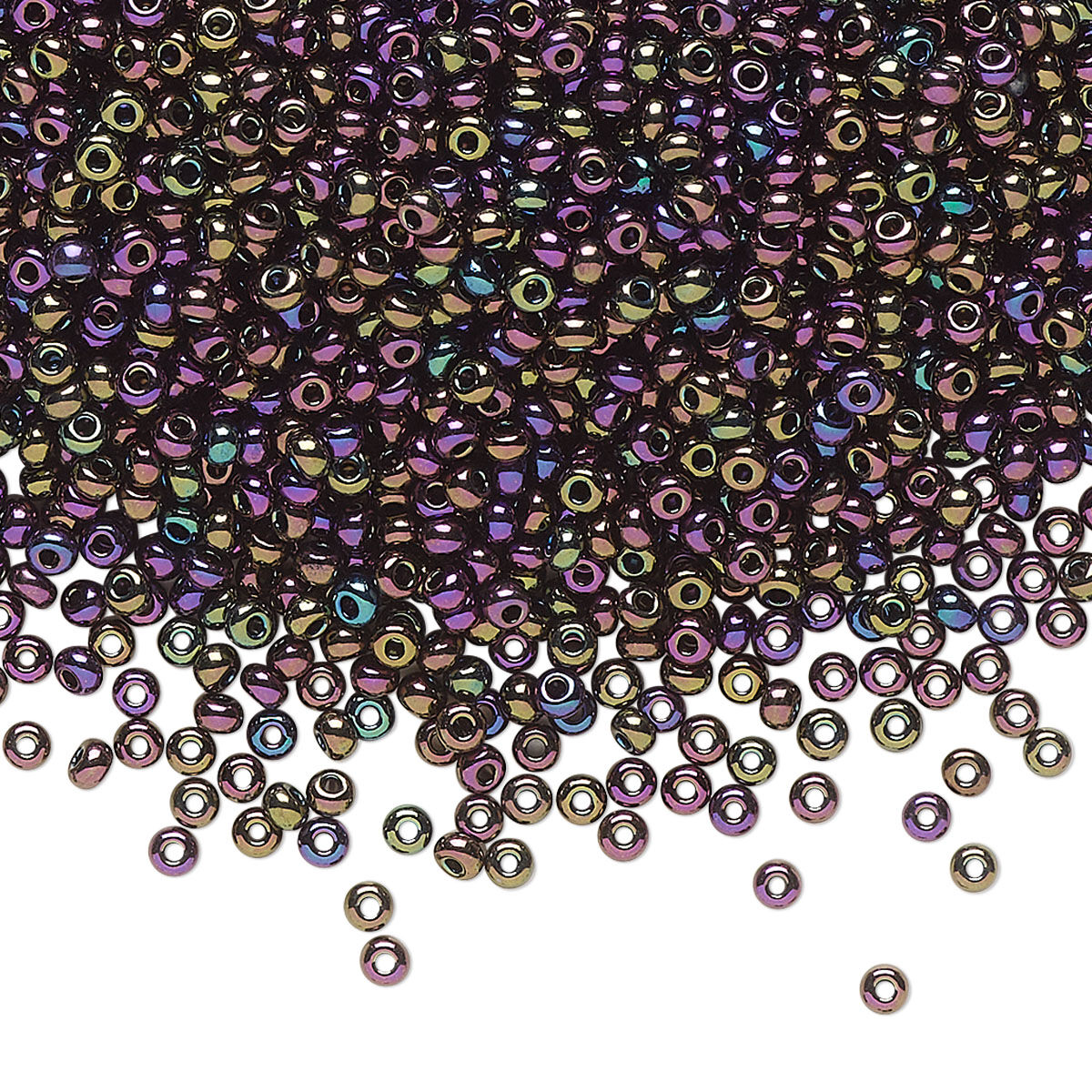 Seed bead, Preciosa Ornela Czech glass, pkg/500g, #11 rocaille, opaque red iris black, (59195).