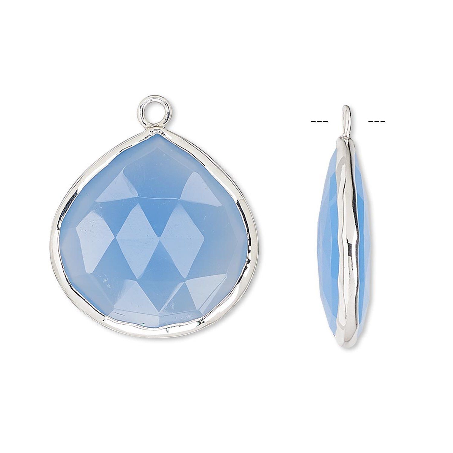 Drop, blue chalcedony (dyed) and sterling silver, 20x20mm double-sided faceted teardrop. Sold per pkg of 2.