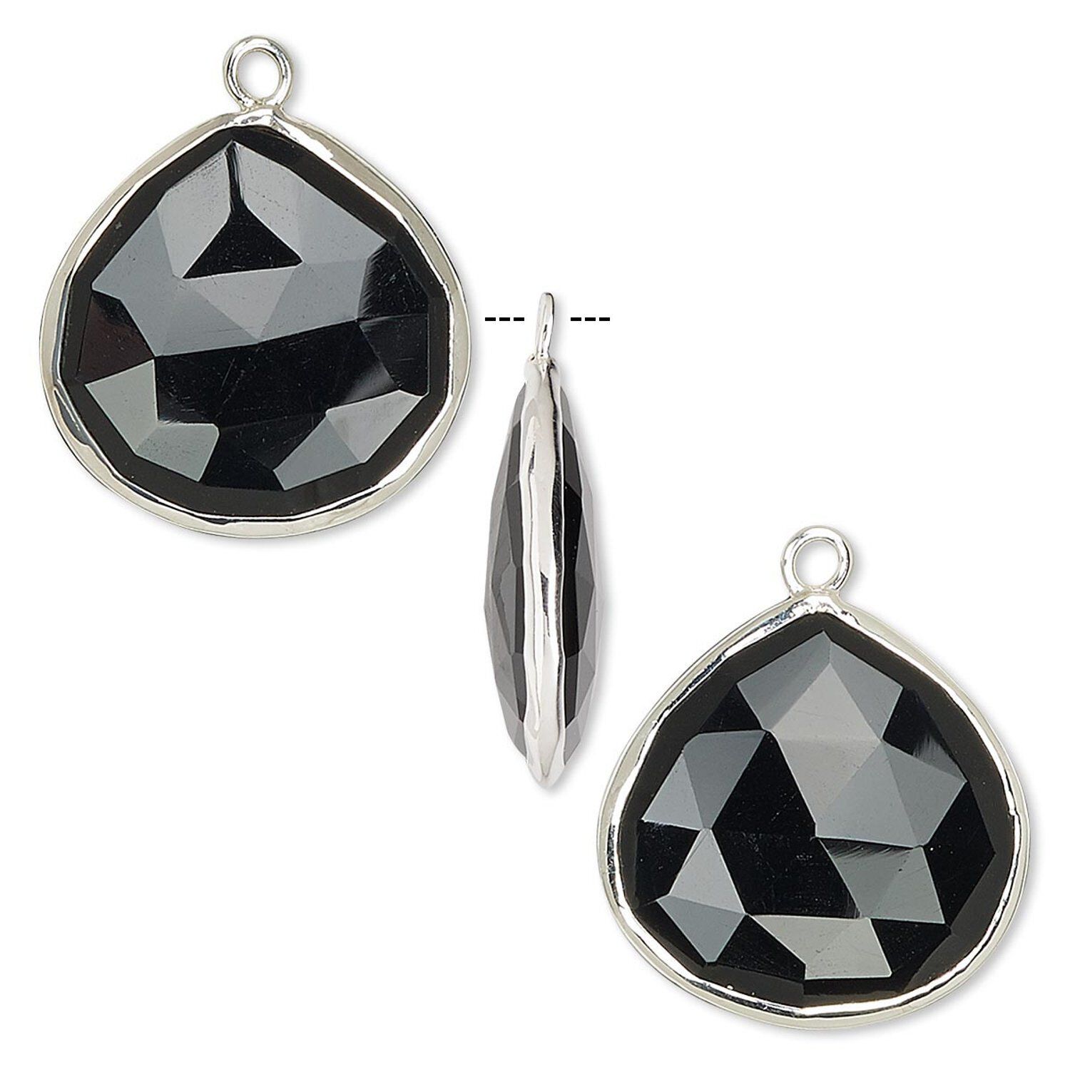 Drop, black onyx (dyed) and sterling silver, 20mm double-sided faceted teardrop. Sold per pkg of 2.
