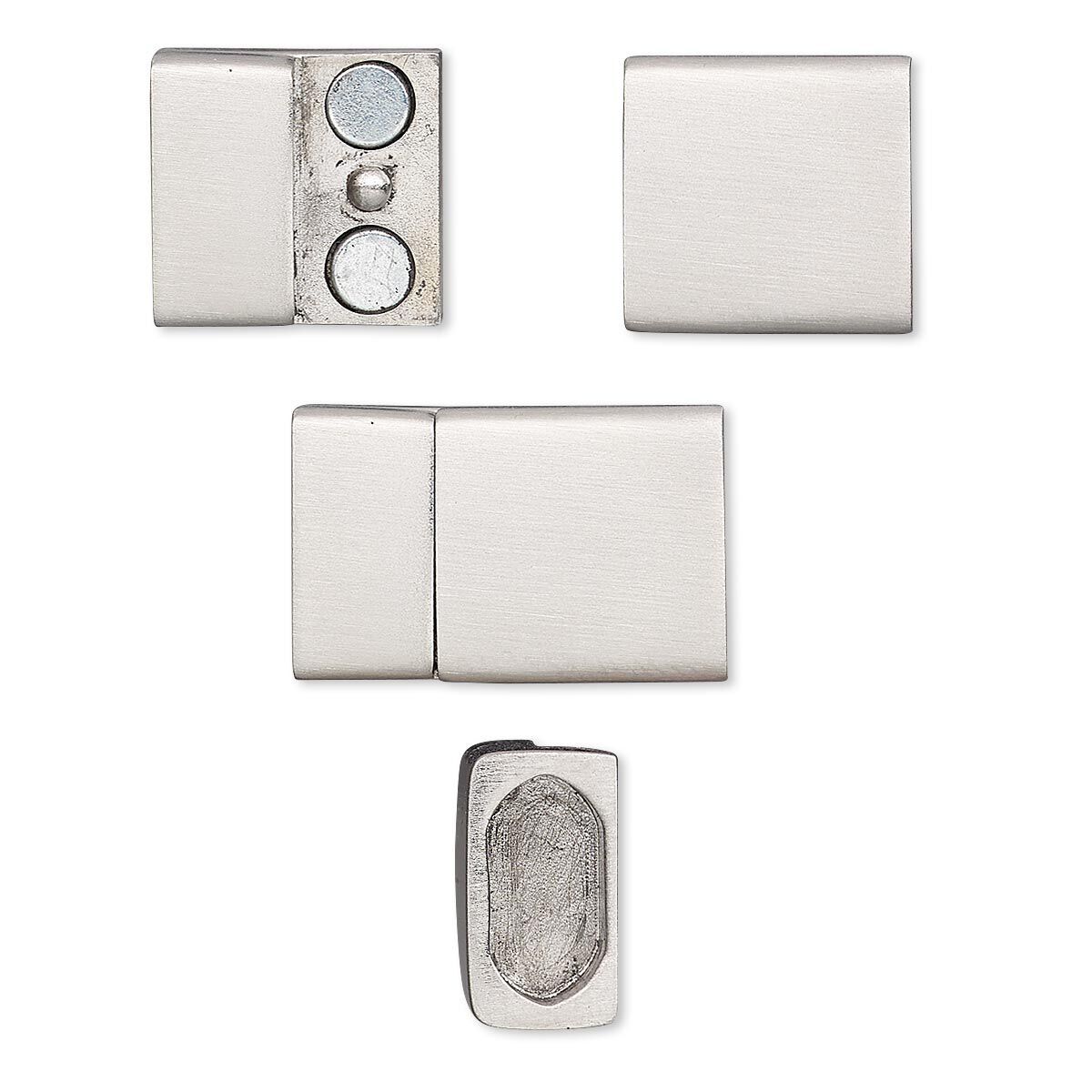 Sturdy, rust and stain resistant, hand-polished 304 stainless steel rectangle clasp with glue-in ends is suitable for licorice-style leather. Heavy-duty magnetic strength.