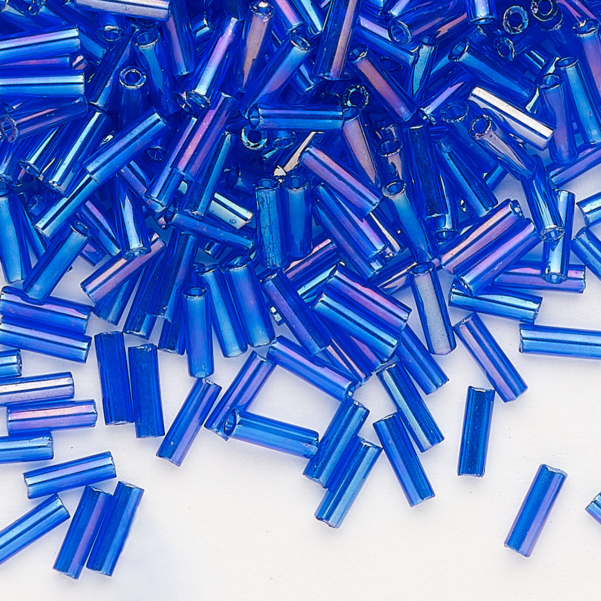 Bead, Preciosa Ornela Czech glass, bugle bead, pkg/500g, 1/4 inch, rainbow translucent medium blue, (31080).