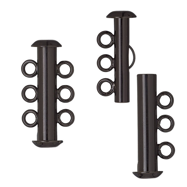 Clasp, 3-strand slide lock, electro-coated brass, black, 21.5x6mm tube. Sold per pkg of 2.