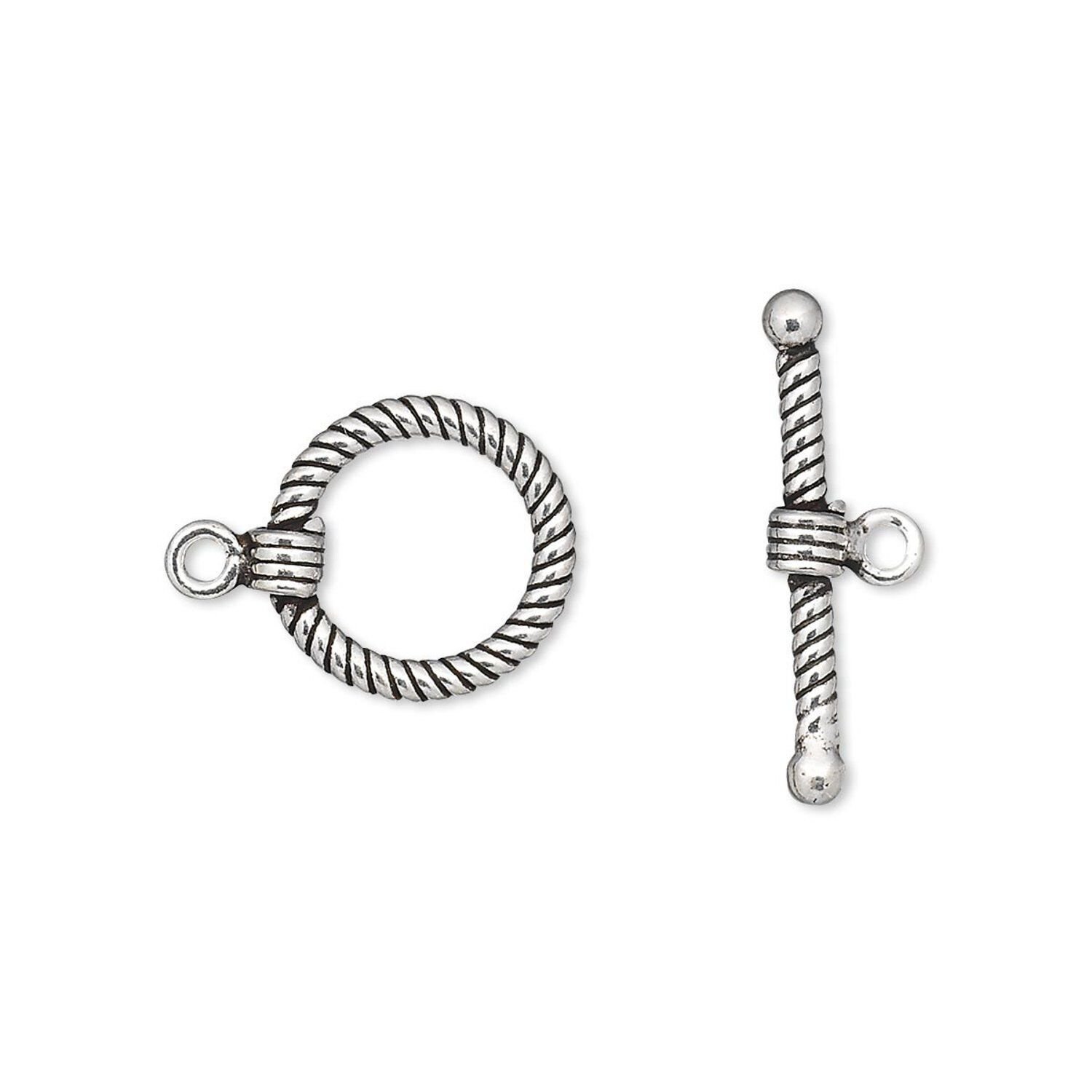 Both stylish and practical, this antiqued sterling silver toggle clasp has a twisted design and keeps jewelry designs secure.