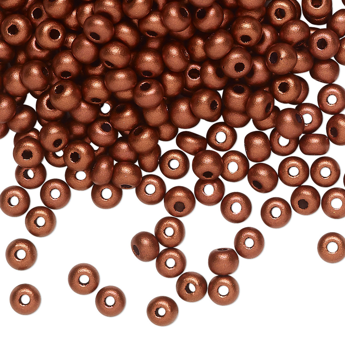 Seed bead, Preciosa Ornela Czech glass, pkg/50g, #6 rocaille, opaque soft dark copper metallic alabaster, (01750).