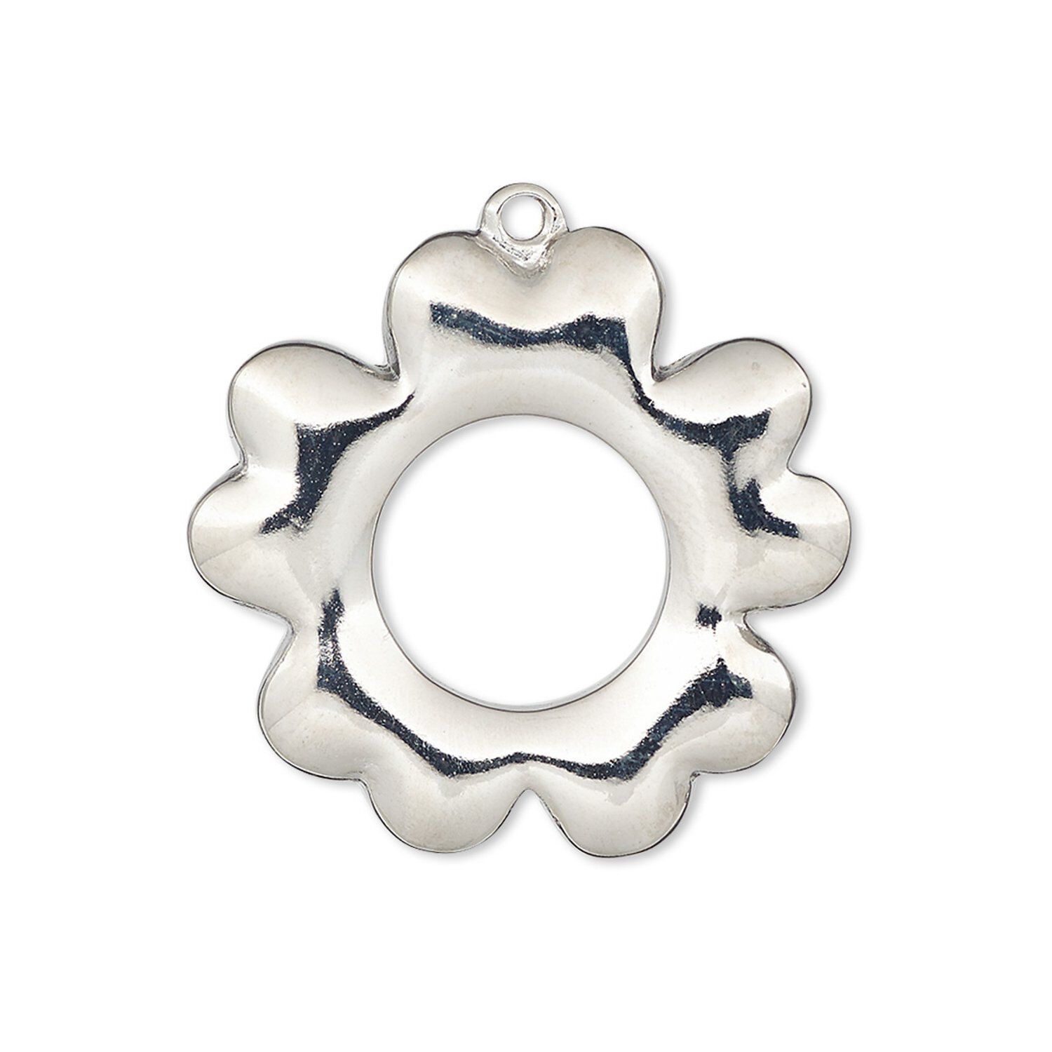 Charm, imitation rhodium-plated "pewter" (zinc-based alloy), 27x27mm single-sided flower with cutout. Sold individually.