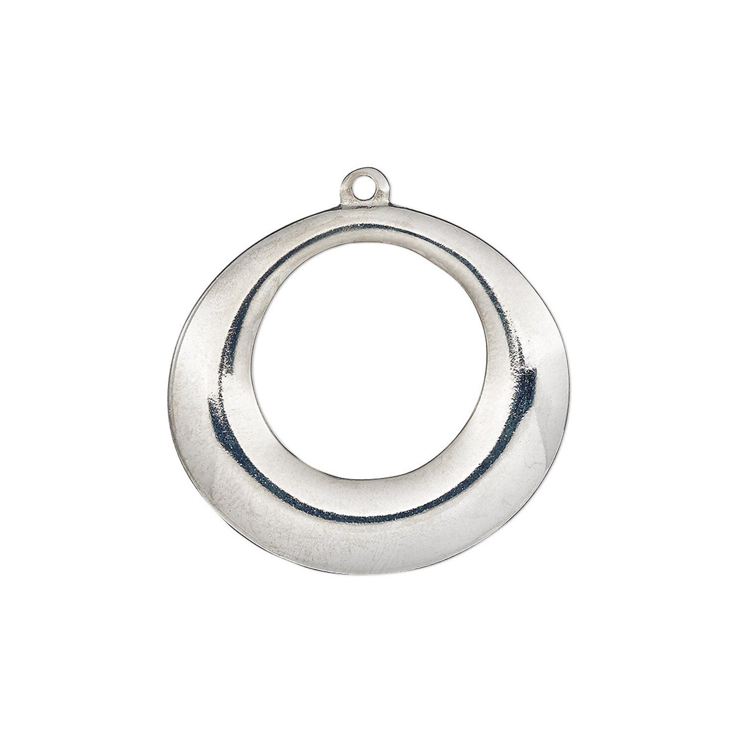Drop, imitation rhodium-plated "pewter" (zinc-based alloy), 28x26mm single-sided oval go-go. Sold individually.