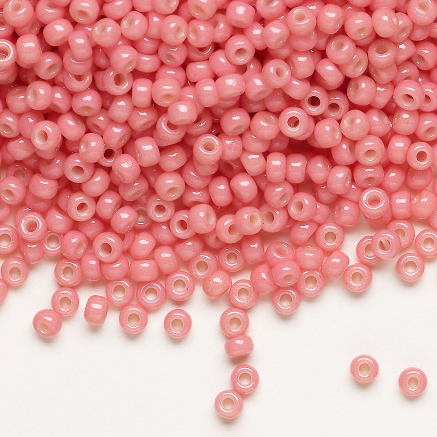 Seed bead, Miyuki, glass, pkg/50g, #8 rocaille, Duracoat® opaque outside dyed guava, (RR-4465).
