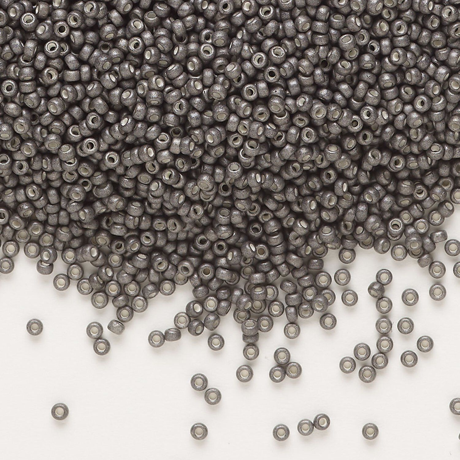 Seed bead, Miyuki, glass, pkg/250g, #15 rocaille, opaque matte galvanized graphite, (RR-2092).