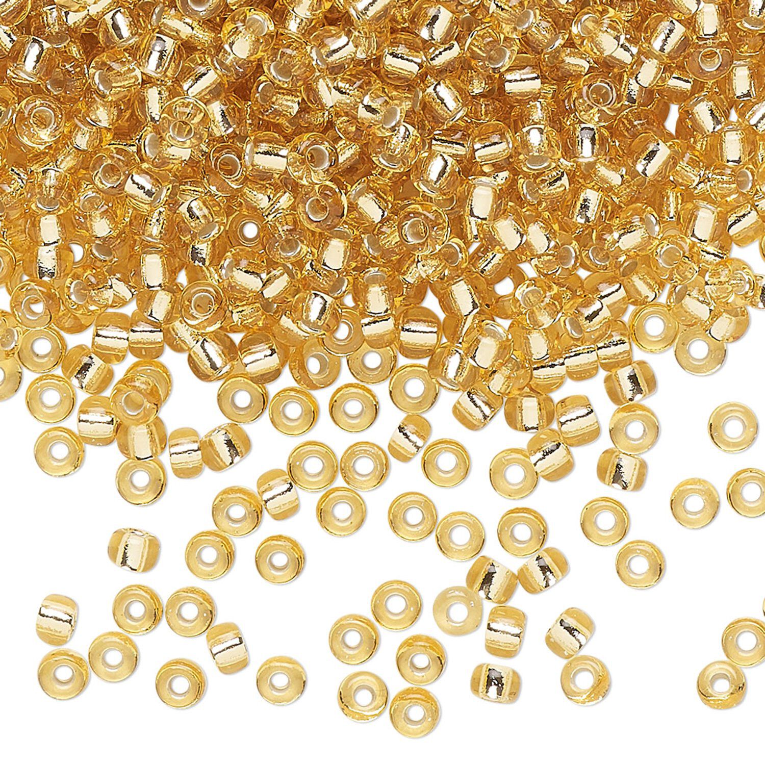 Seed bead, Miyuki, glass, pkg/250g, #8 rocaille, transparent silver-lined gold, (RR-3).