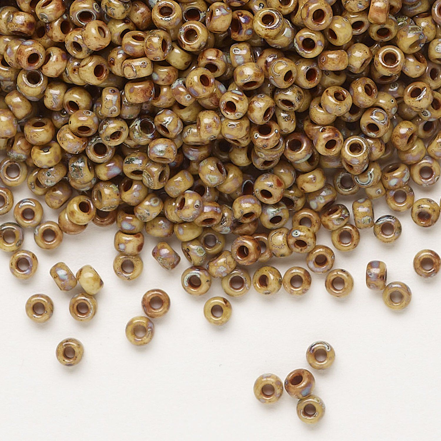Seed bead, Miyuki, glass, pkg/250g, #8 rocaille, opaque Picasso brown, (RR-4517).