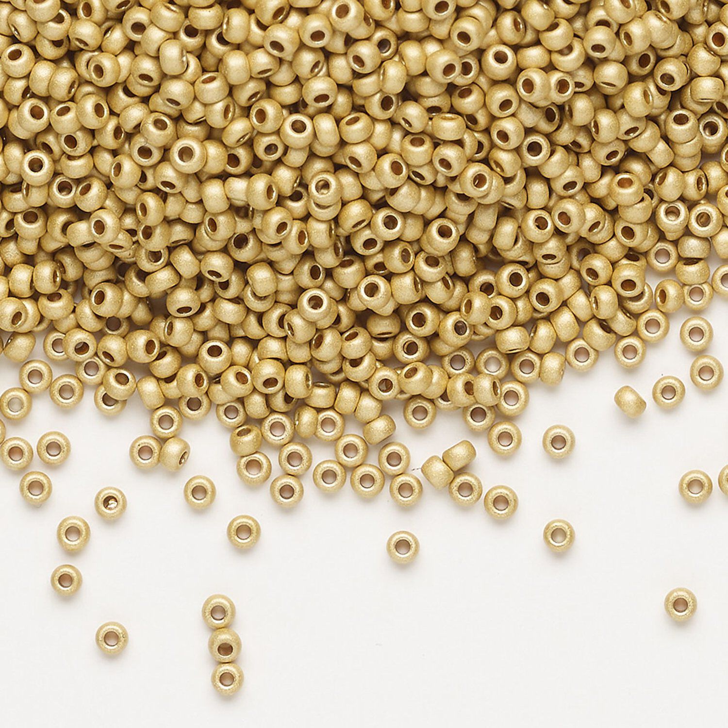 Seed bead, Preciosa Ornela Czech glass, pkg/500g, #11 rocaille, opaque matte metallic terra dyed gold clear, (18581).