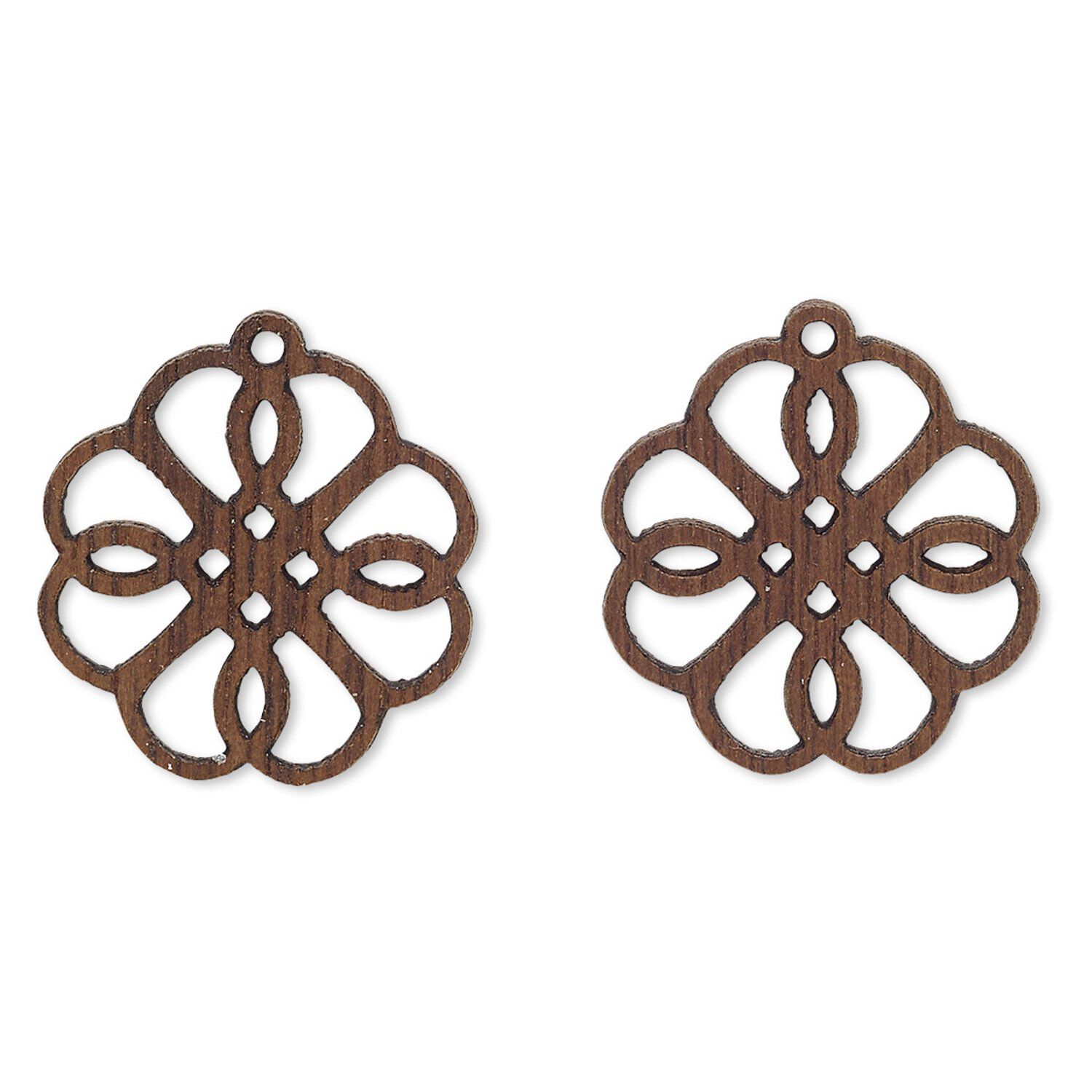 Lightweight laser-cut and -engraved natural black walnut wood drops feature incredible detail, with beautiful high-contrast patterns. Ideal for earrings--or for lavishing multiple layers in complex designs. Drop backs are covered by easy-peel tape from manufacturing process; remove tape before use.