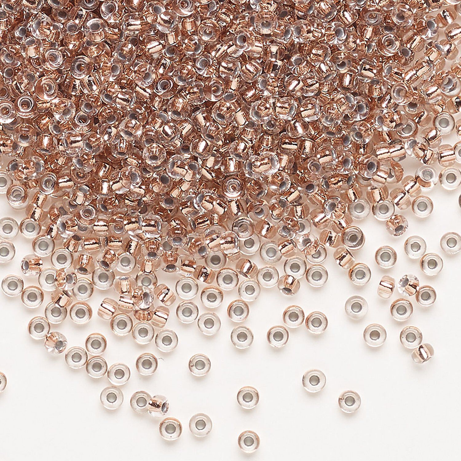 Seed bead, Miyuki, glass, pkg/25g, #11 rocaille, transparent copper-lined crystal clear, (RR-197).