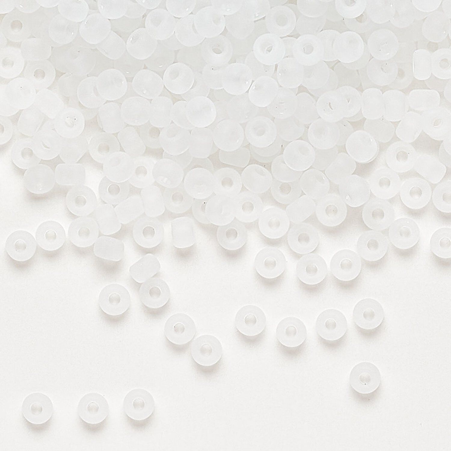 Seed bead, Miyuki, glass, pkg/50g, #8 rocaille, translucent matte crystal clear, (RR-131F).