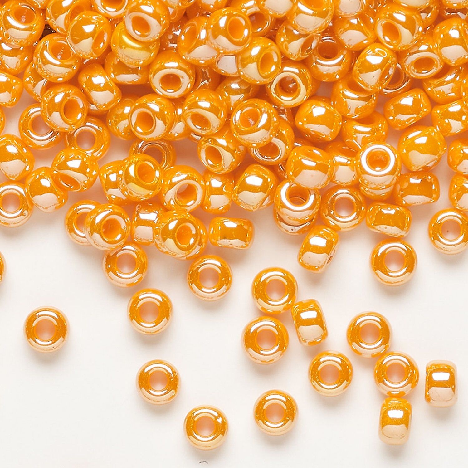 Seed bead, Miyuki, glass, pkg/250g, #6 rocaille, opaque luster mandarin orange, (RR-423).