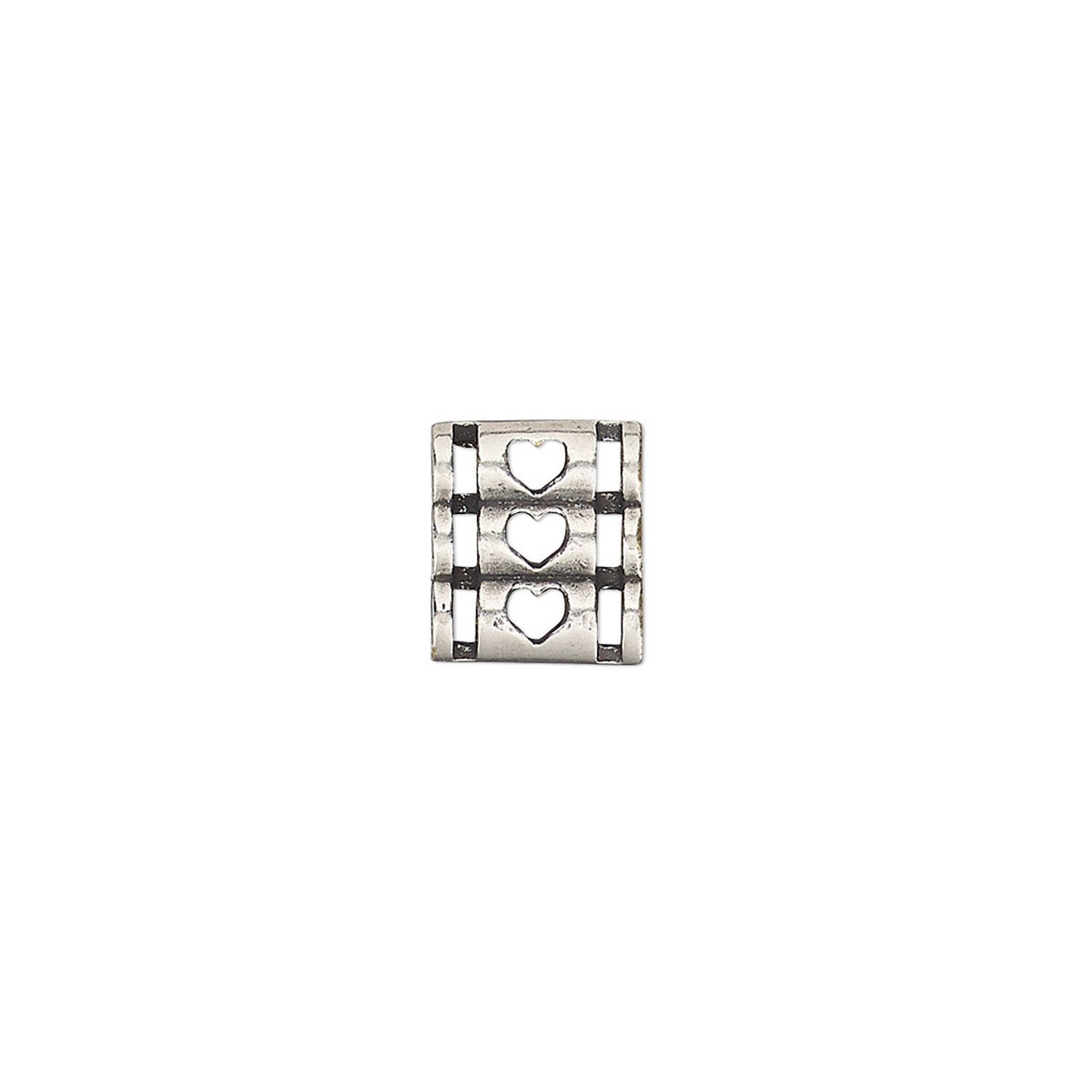 This handy 3-strand spacer keeps 2mm cords together while adding a decorative heart cutout accent to jewelry lines. Attractive, antique silver-plated brass offers a vintage or rustic appeal. To lock down spacers on cording, add a dab of glue and allow to dry or crimp the outside of splits.