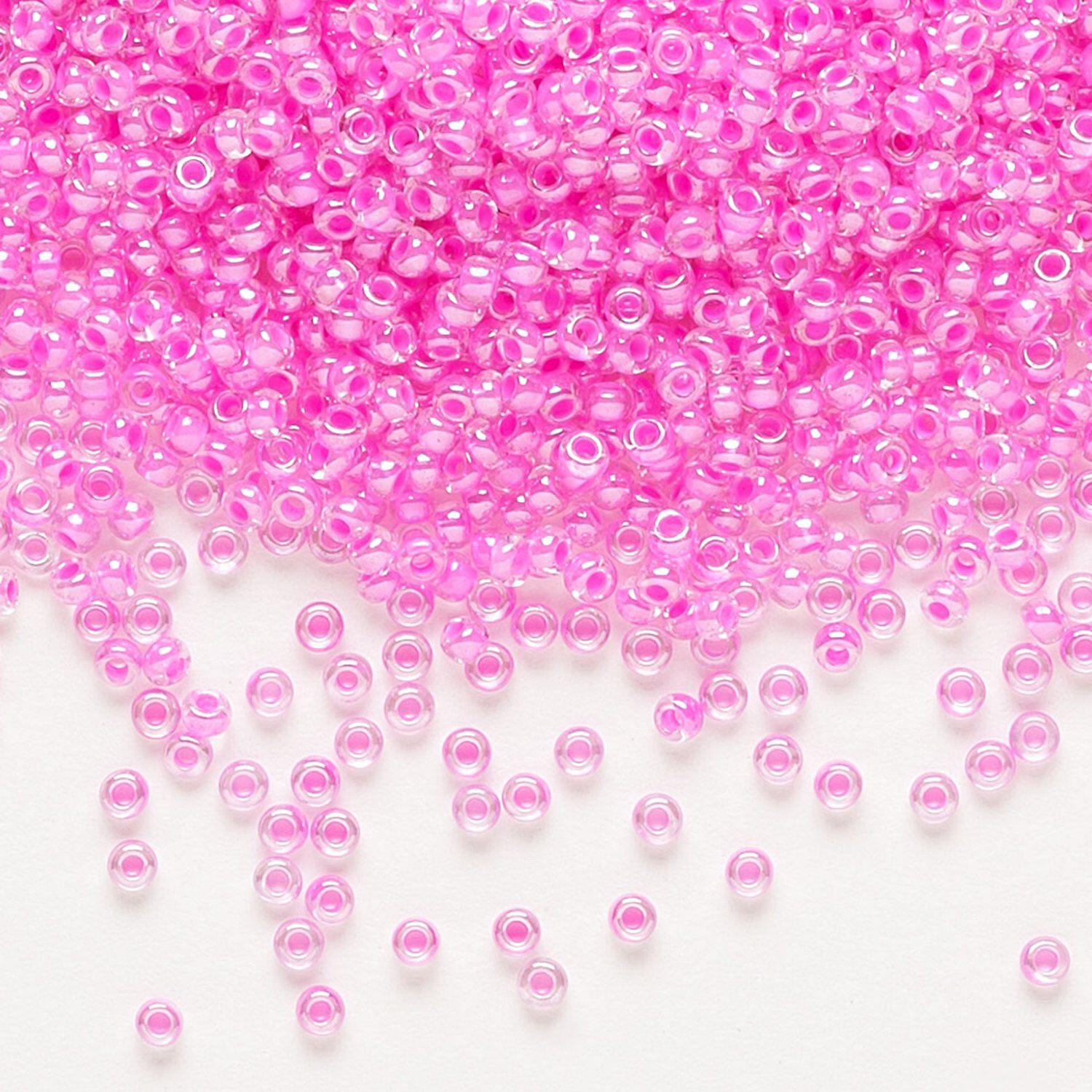 Seed bead, Preciosa Ornela Czech glass, pkg/500g, #11 rocaille, translucent pink-lined luster clear, (38177).