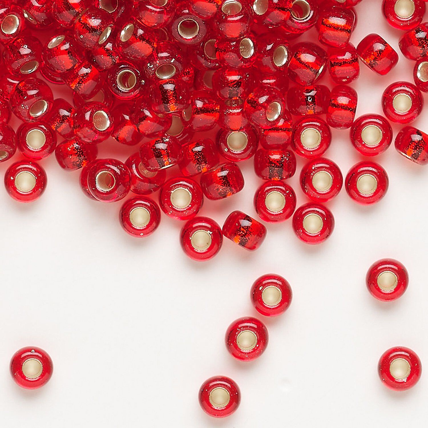 Seed bead, Miyuki, glass, pkg/25g, #6 rocaille, transparent silver-lined flame red, (RR-10).