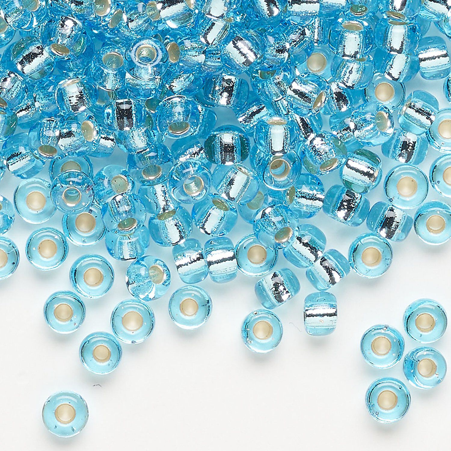 Seed bead, Miyuki, glass, pkg/25g, #6 rocaille, transparent silver-lined aqua blue, (RR-18).
