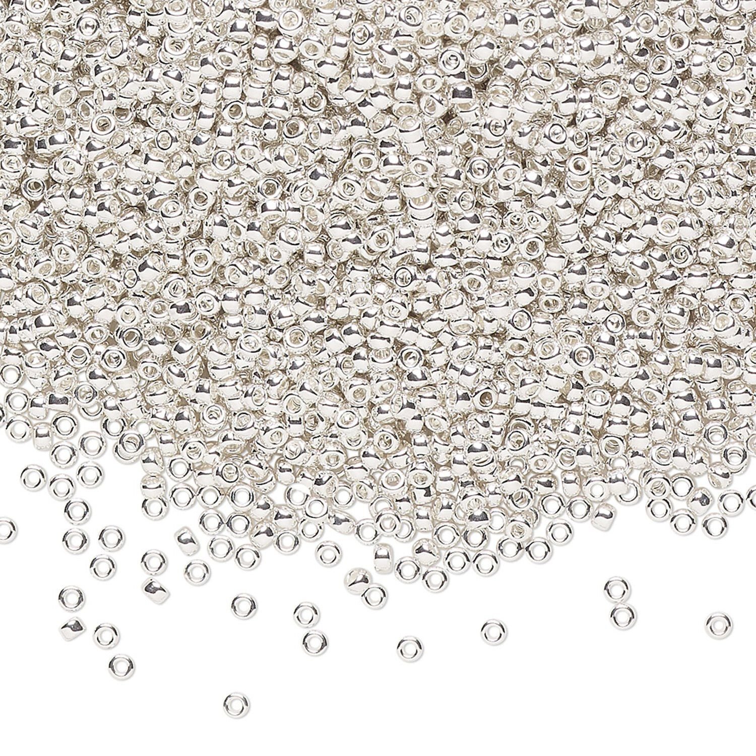 Seed bead, Miyuki, glass, pkg/250g, #15 rocaille, opaque silver-plated, (RR-961).