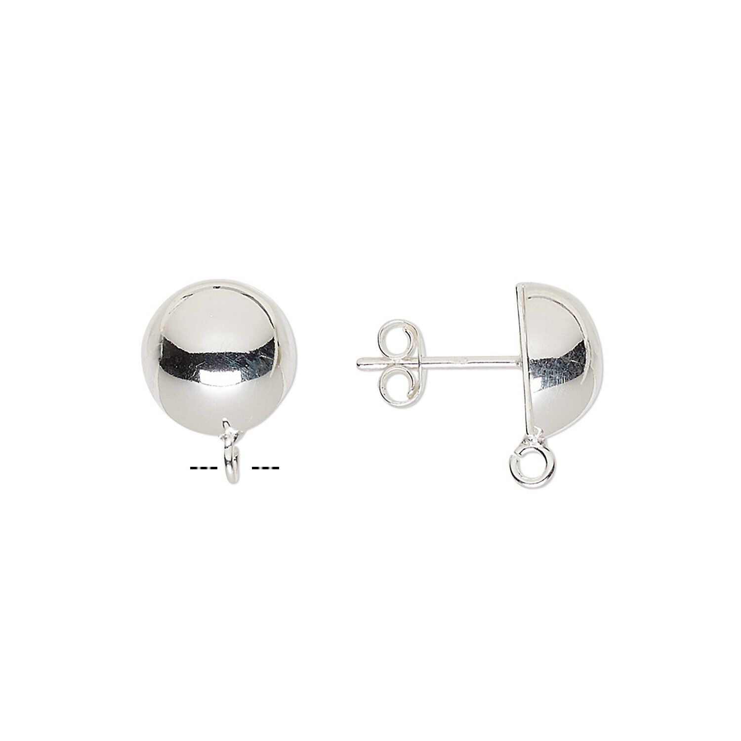 From stud to finish, get the sought-after gleam of sterling silver. The open loop beneath the reflective 10mm half-ball design is perfect for dangling charms, chain and beaded adornments. Earnuts have an anti-tarnish coating. Earnuts included.