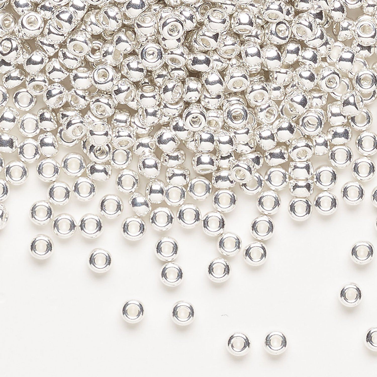 Seed bead, Miyuki, glass, pkg/250g, #8 rocaille, opaque silver-plated, (RR-961).