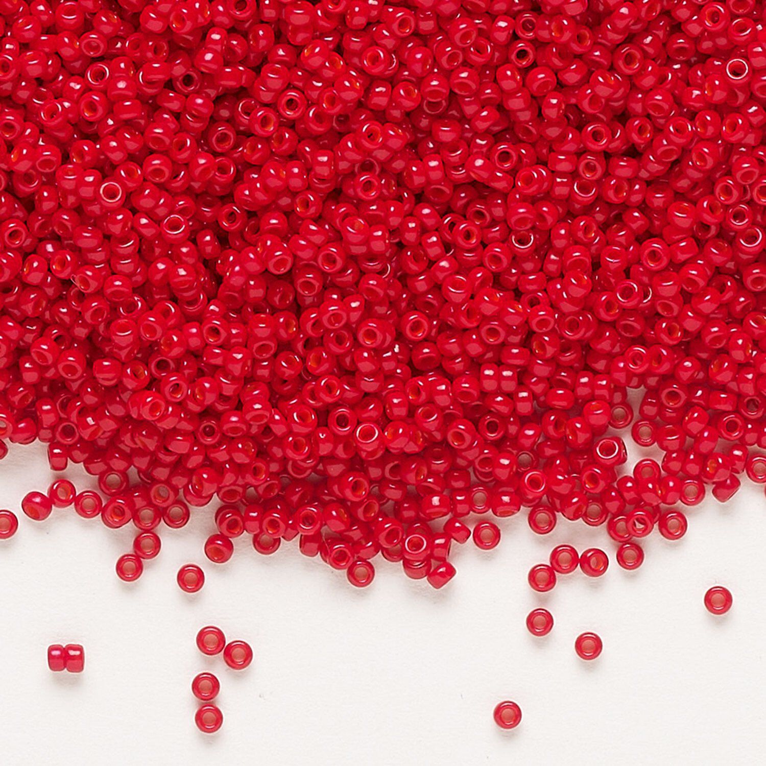 Seed bead, Miyuki, glass, pkg/35g, #15 rocaille, opaque semi-matte bright red, (RR-1684).