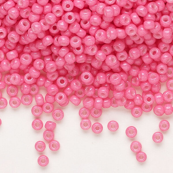 Seed bead, Miyuki, glass, pkg/250g, #8 rocaille, opaque outside dyed carnation pink, (RR-1371).