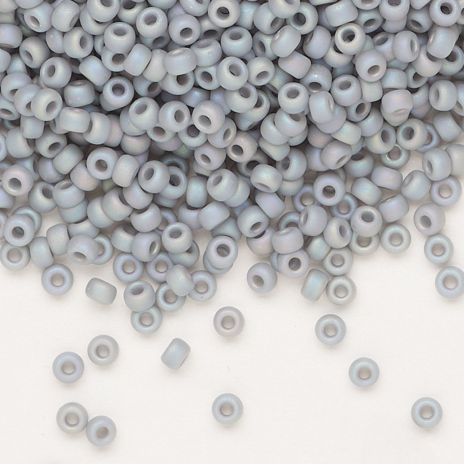 Seed bead, Miyuki, glass, pkg/250g, #8 rocaille, opaque matte rainbow ghost grey, (RR-498FR).