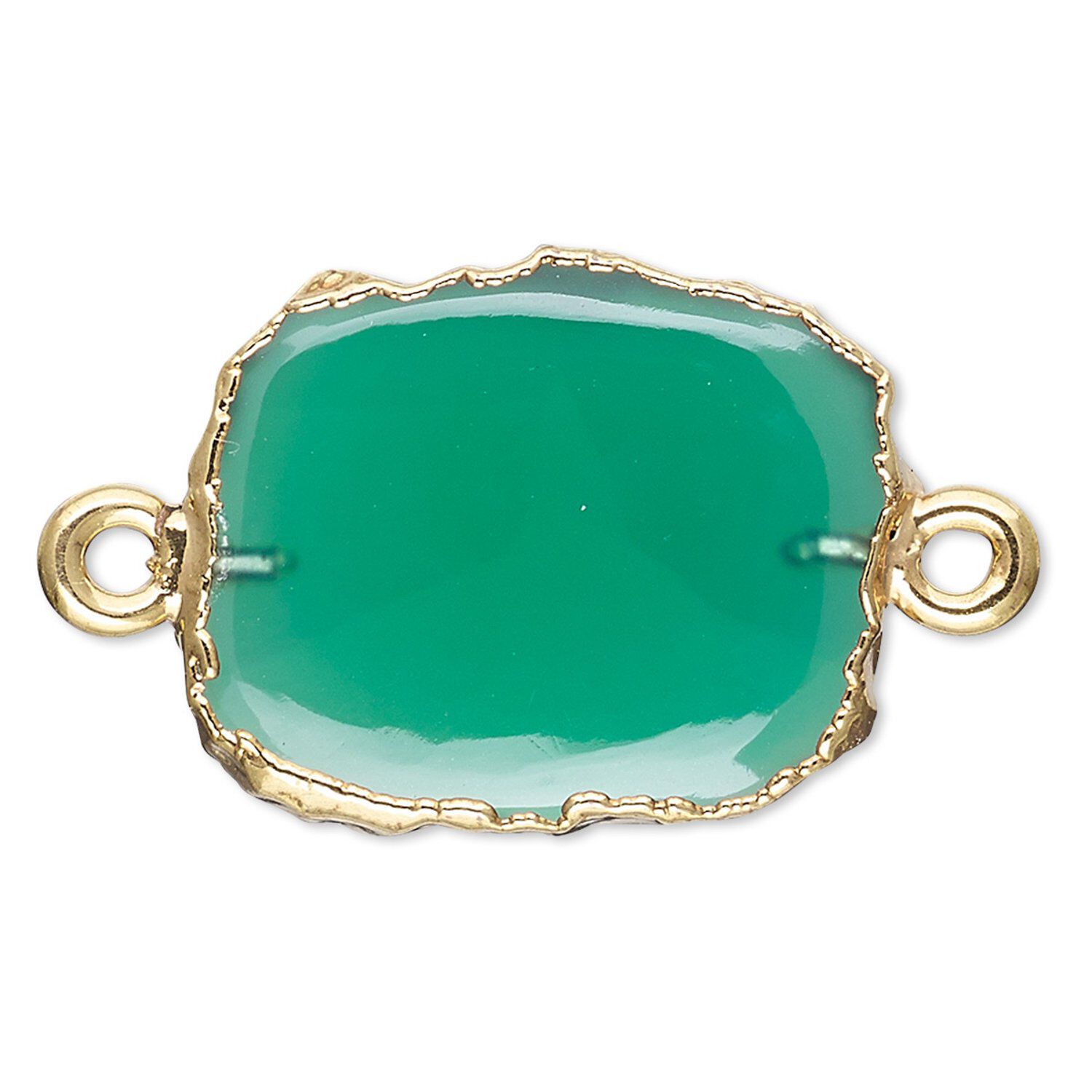 Green onyx / sterling silver 1pkg2, electrocoated gold-plated freeform rectangle link 13x12mm-15x14mm