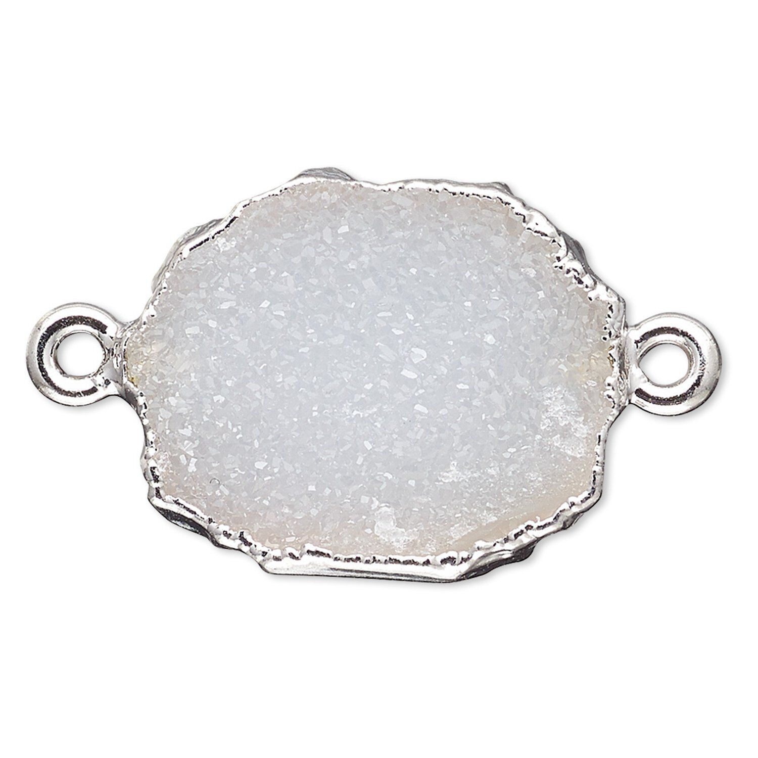 Druzy agate / sterling silver 1pkg2, electrocoated freeform rectangle link natural 13x12mm-15x14mm