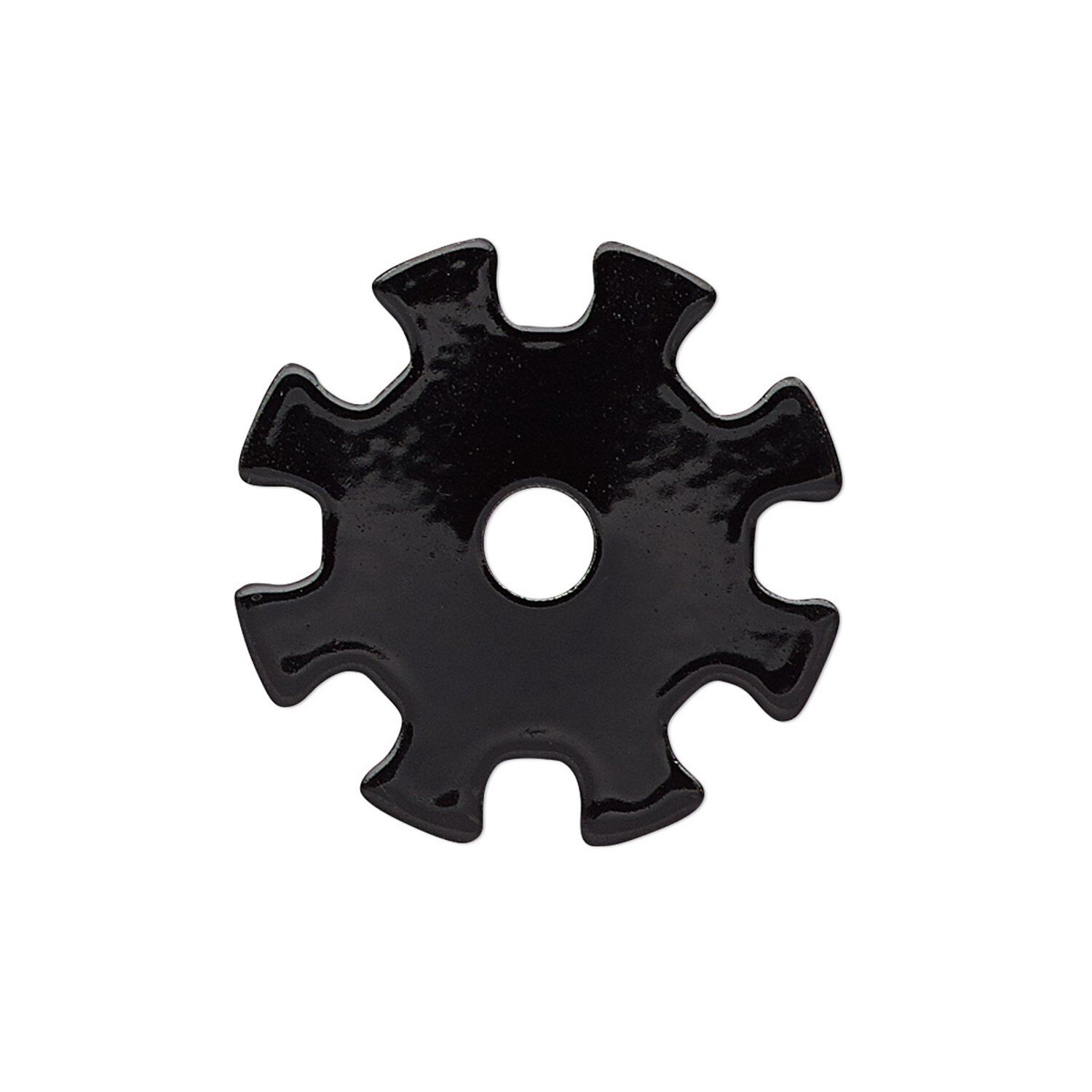 Black-painted steel gear-shaped component provides endless wire- or thread-wrapping possibilities. Match the center hole with a corresponding stone size to create a charming wrapped creation, or use with rivets or other cold connections for a myriad of design choices.