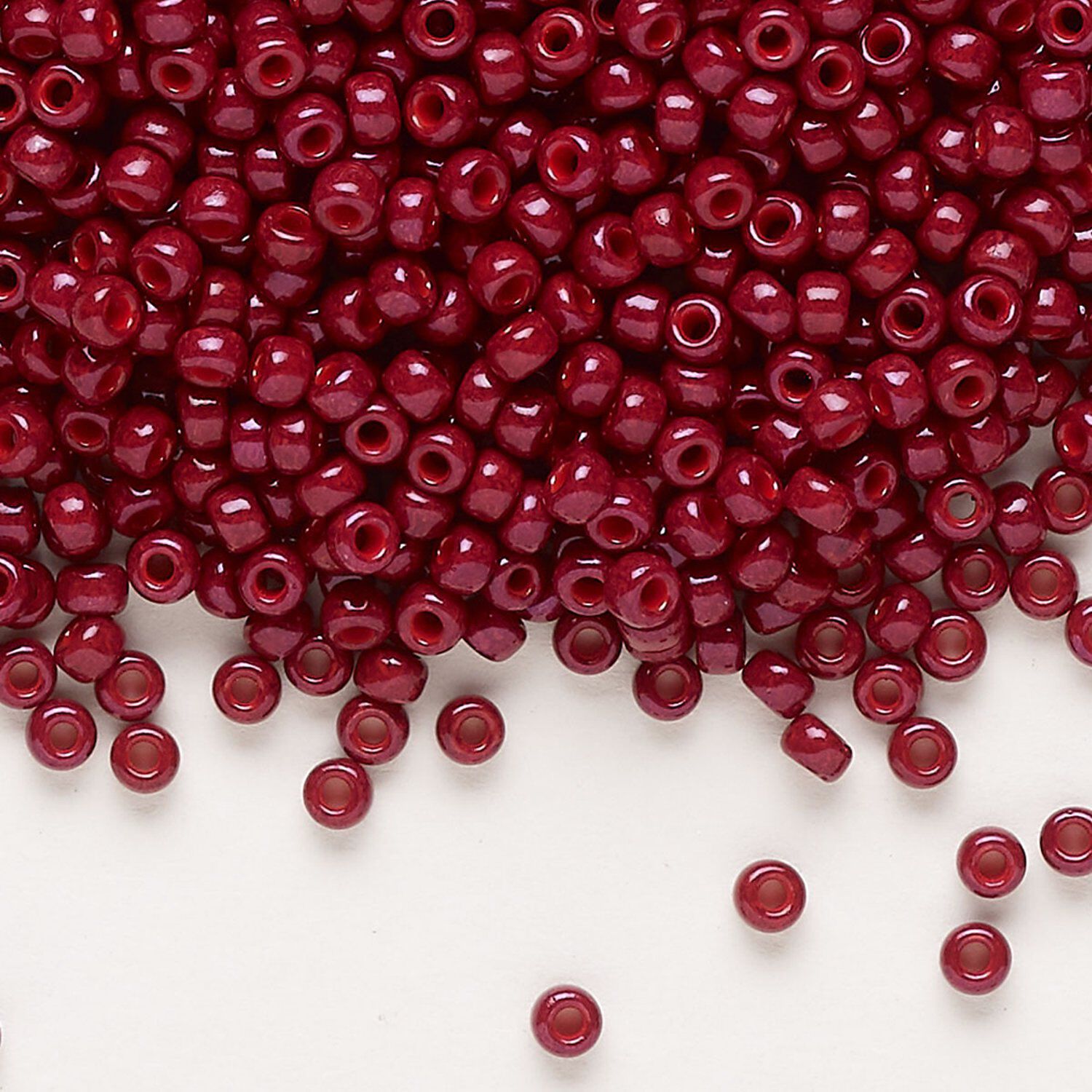 Seed bead, Miyuki, glass, pkg/250g, #8 rocaille, opaque outside dyed maroon, (RR-1464).