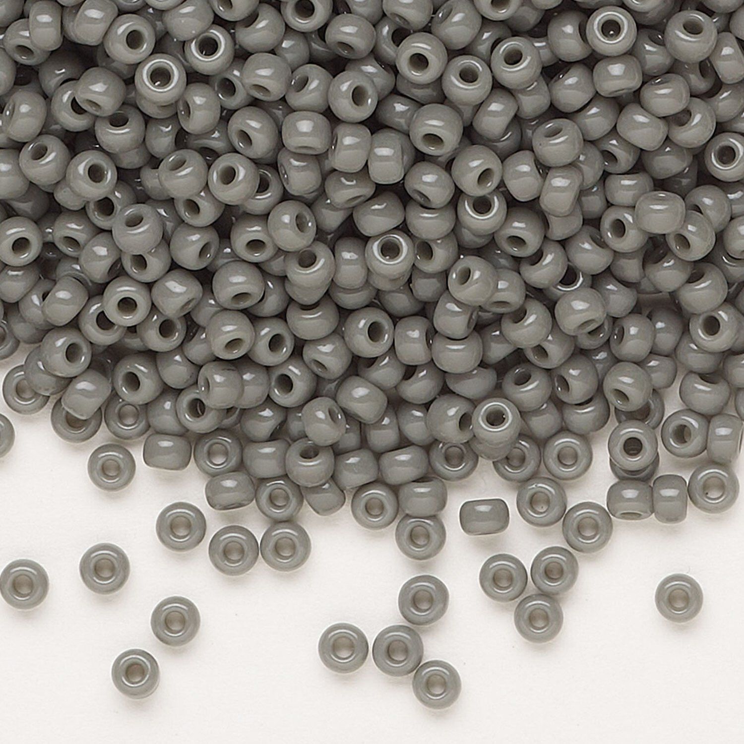 Seed bead, Miyuki, glass, pkg/50g, #8 rocaille, opaque grey, (RR-499).