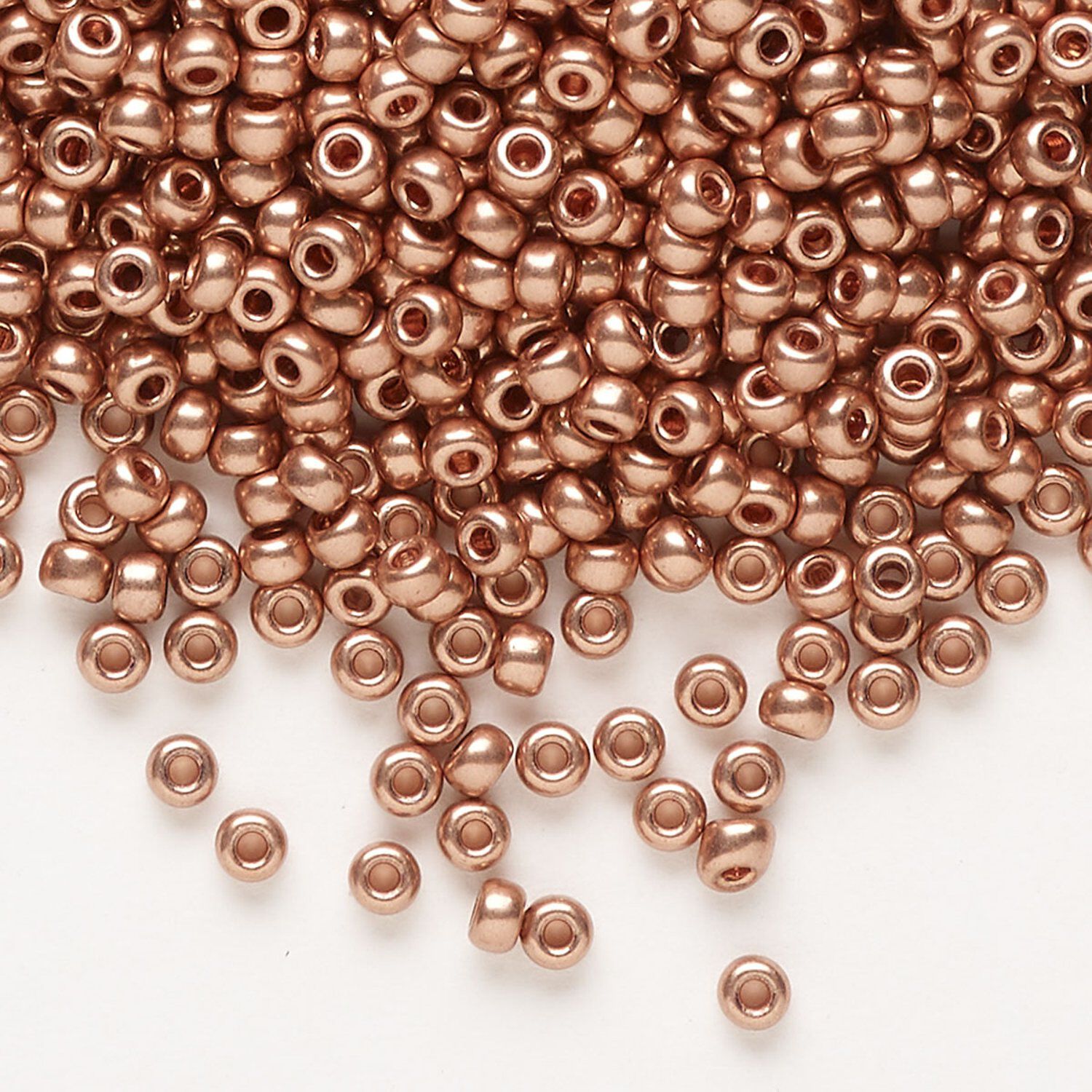 Seed bead, Miyuki, glass, pkg/250g, #8 rocaille, opaque copper-plated, (RR-187).