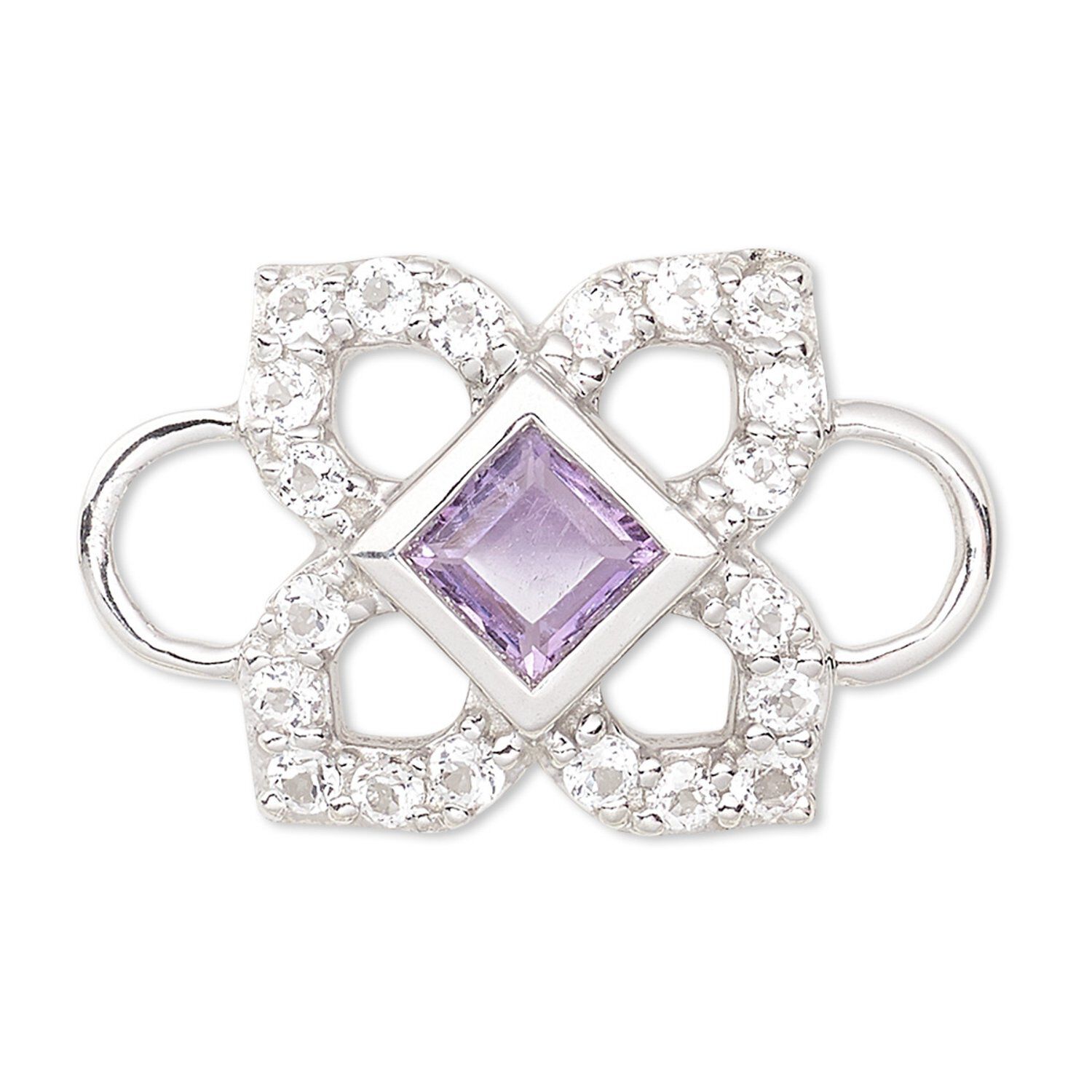 Link, white topaz / amethyst (natural) / sterling silver, 12x12mm single-sided open flower. Sold individually.