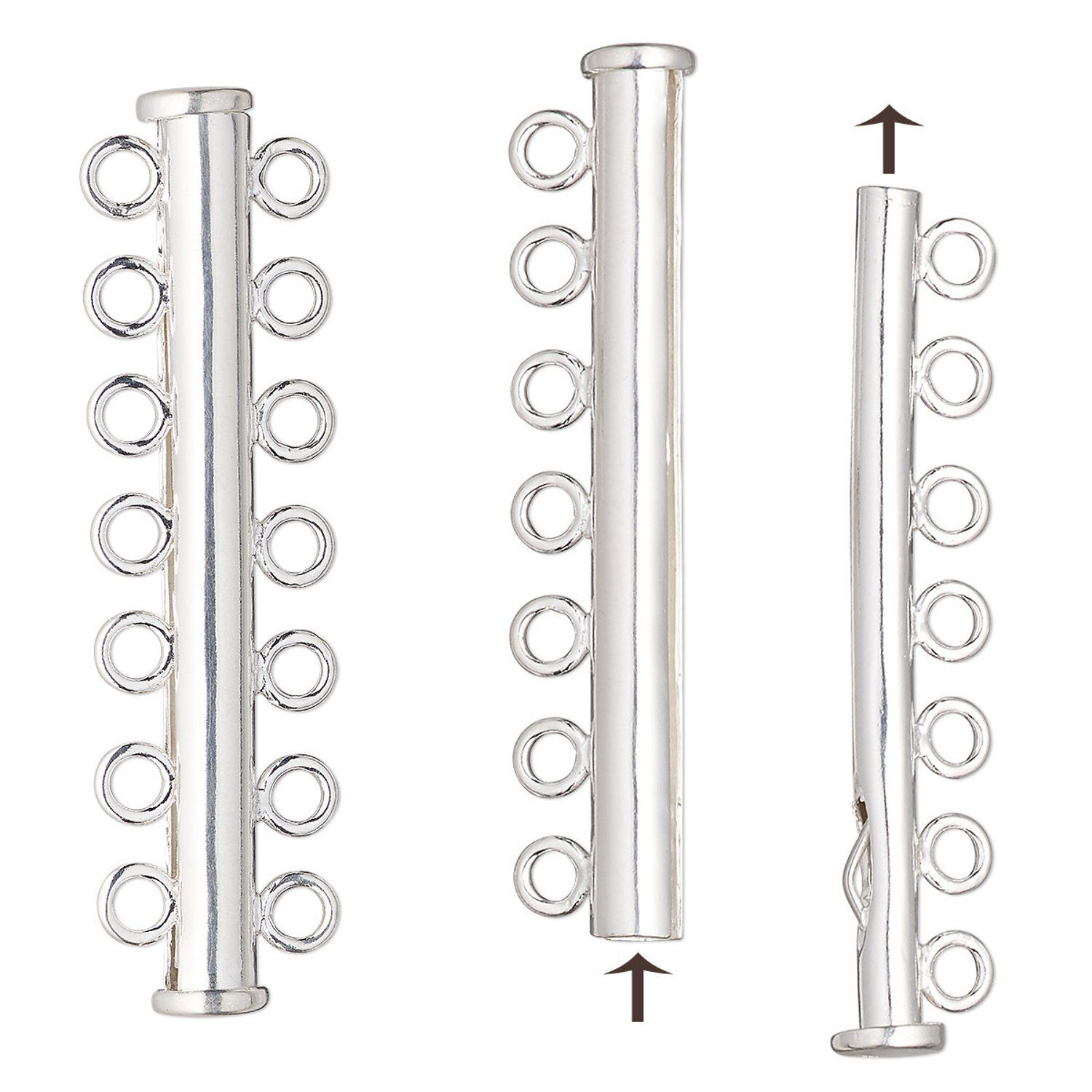 Clasp, 7-strand slide lock, sterling silver-filled, 44x5.5mm tube. Sold individually.