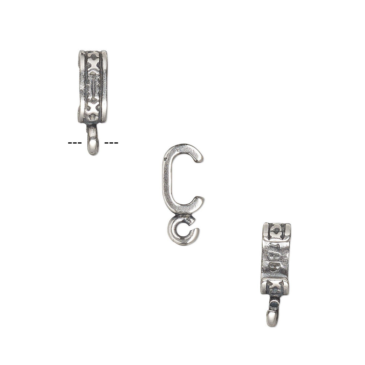 Slide these specially designed components onto ribbon or flat leather cord for instant adornment. Pinch the wings down against the cording and add charms, pendants or focal components to the attached open loop for personalized possibilities. Components are cast by machine for consistency in size, shape and design.