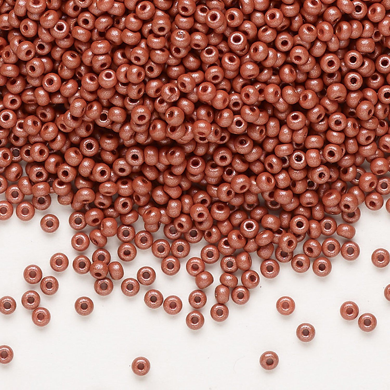 Seed bead, Preciosa Ornela Czech glass, pkg/50g, #11 rocaille, opaque PermaLux dyed brown chalkwhite, (22007).