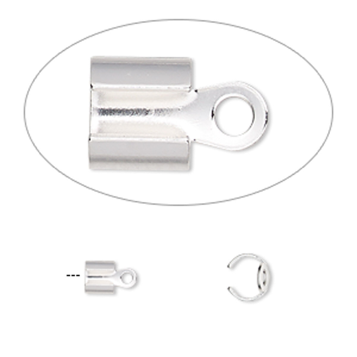 Cord end, fold-over, silver-plated steel, 7x6mm, 5.5mm inside diameter. Sold per pkg of 100.