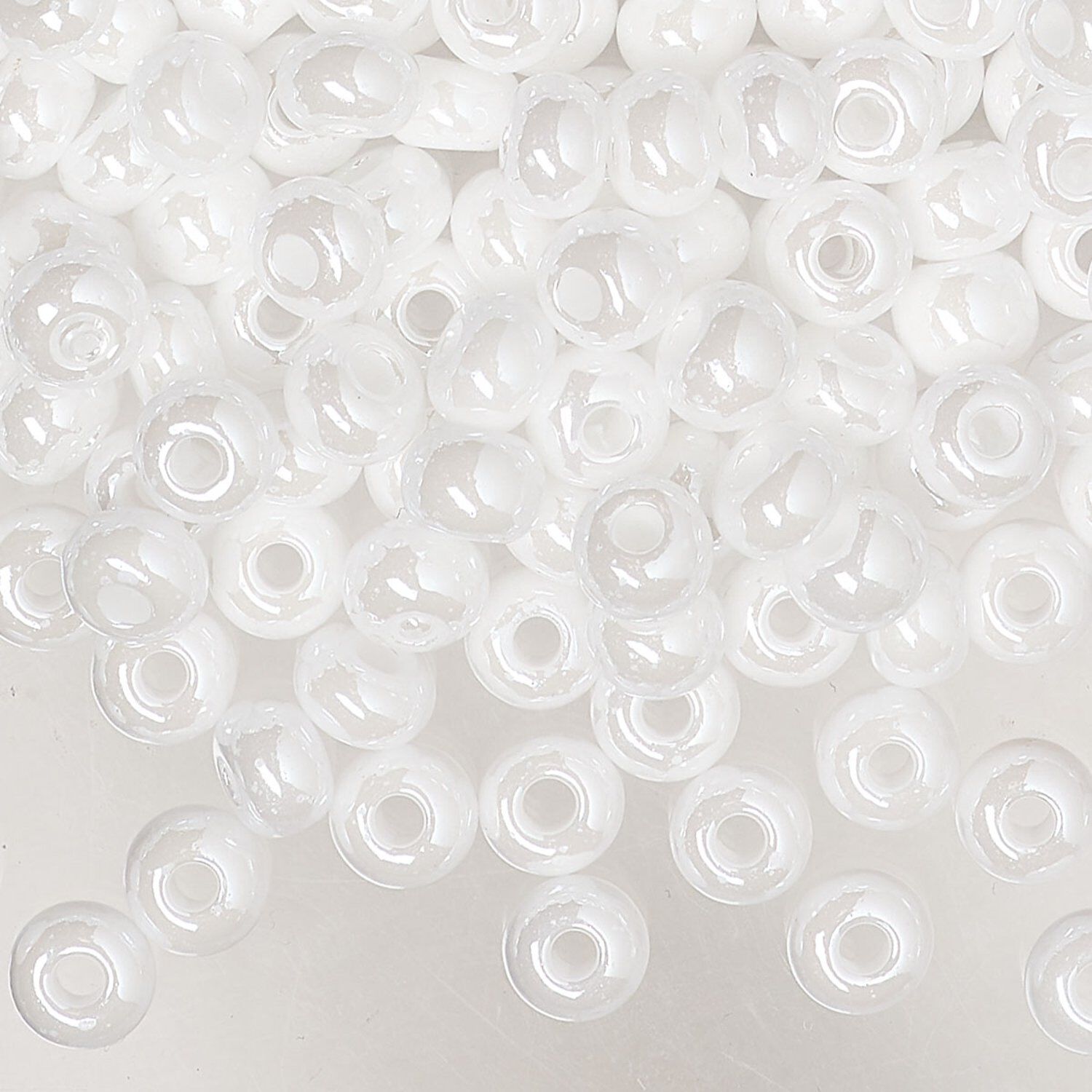 Seed bead, Preciosa Ornela, glass, opaque luster chalkwhite, #2 rocaille. Sold per 50-gram pkg.