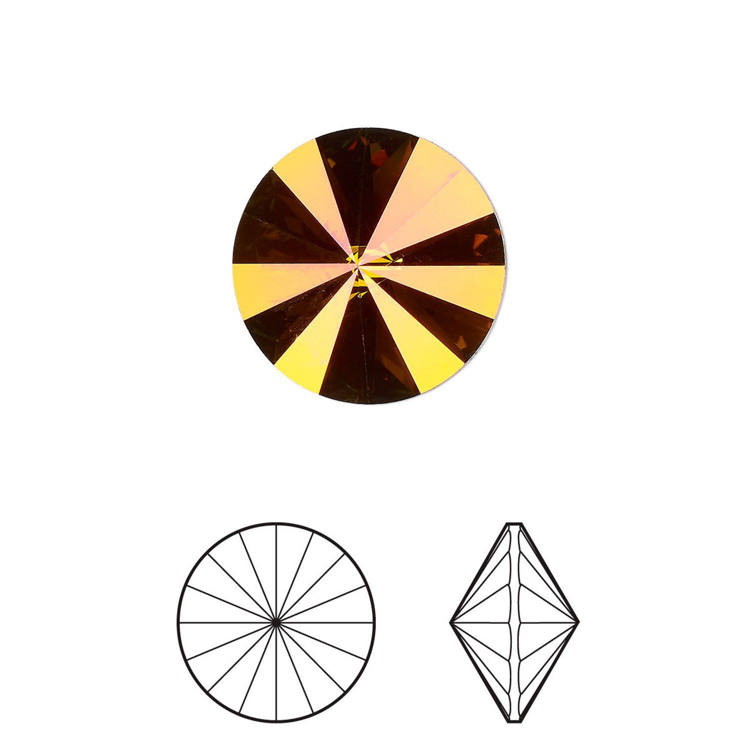 Chaton 12pk crystal mahogany foil back, Crystal Passions® 14mm rivoli 1122
