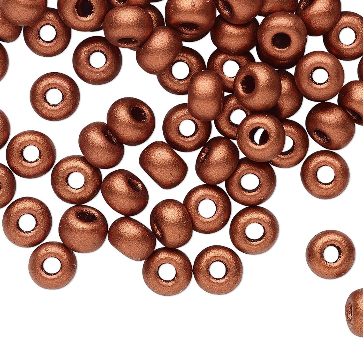 Seed bead, Preciosa Ornela Czech glass, pkg/500g, #2 rocaille, opaque soft dark copper metallic alabaster, (01750).