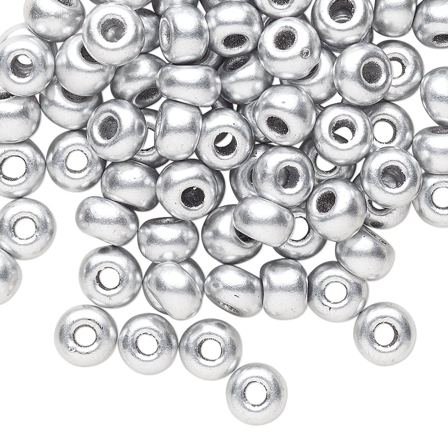 Seed bead, Preciosa Ornela Czech glass, pkg/500g, #2 rocaille, opaque metallic soft silver alabaster white, (01700).