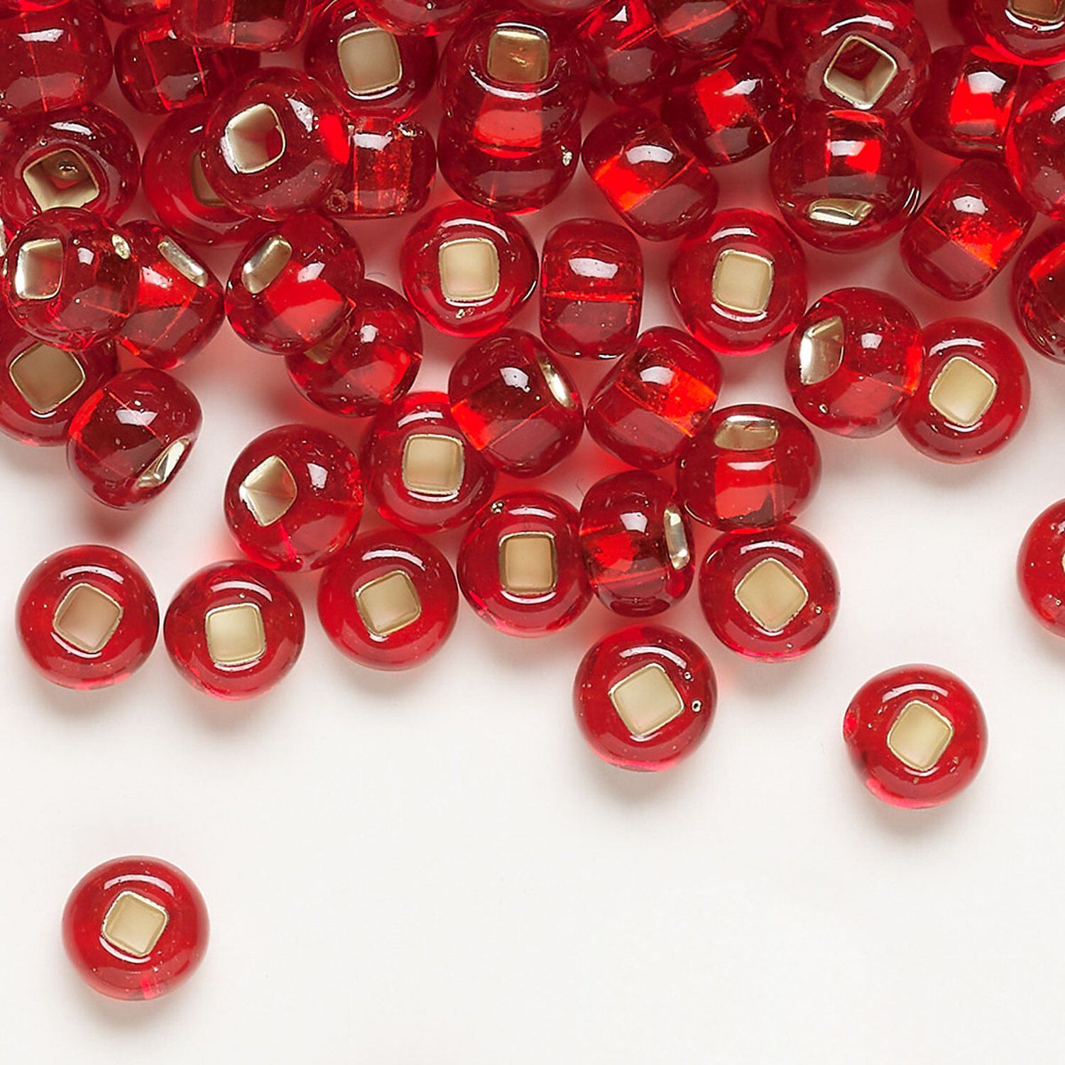 Seed bead, Preciosa Ornela, glass, transparent silver-lined red, #2 rocaille with square hole. Sold per 50-gram pkg.
